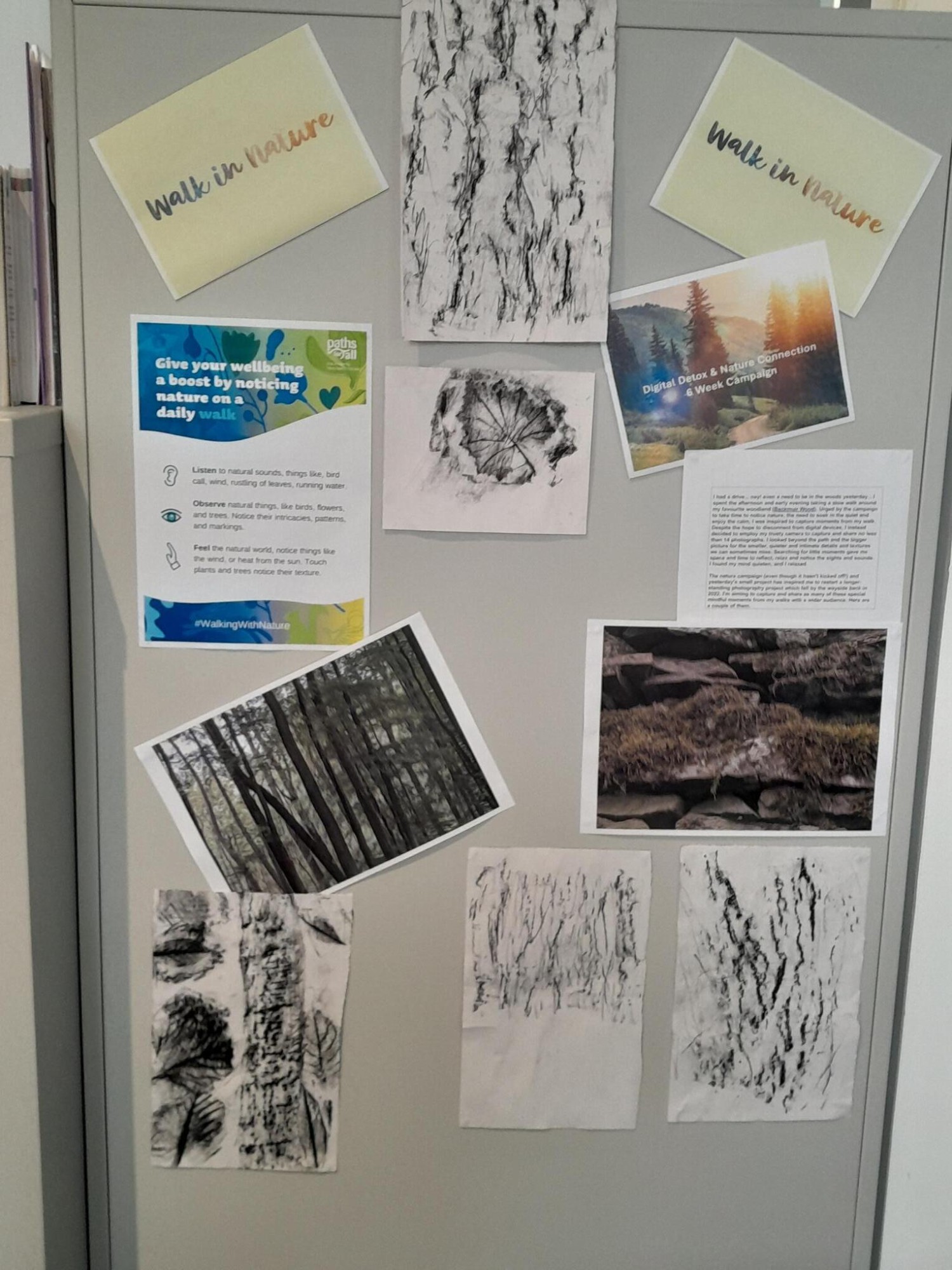 Staff are also encouraged to record their experiences in a way that suits them, whether that is by taking photos, drawing or note taking and sharing these via our internal channels. We have also created a ‘Walk in Nature Wall’ in our office space where people are encouraged to post and share their experiences.