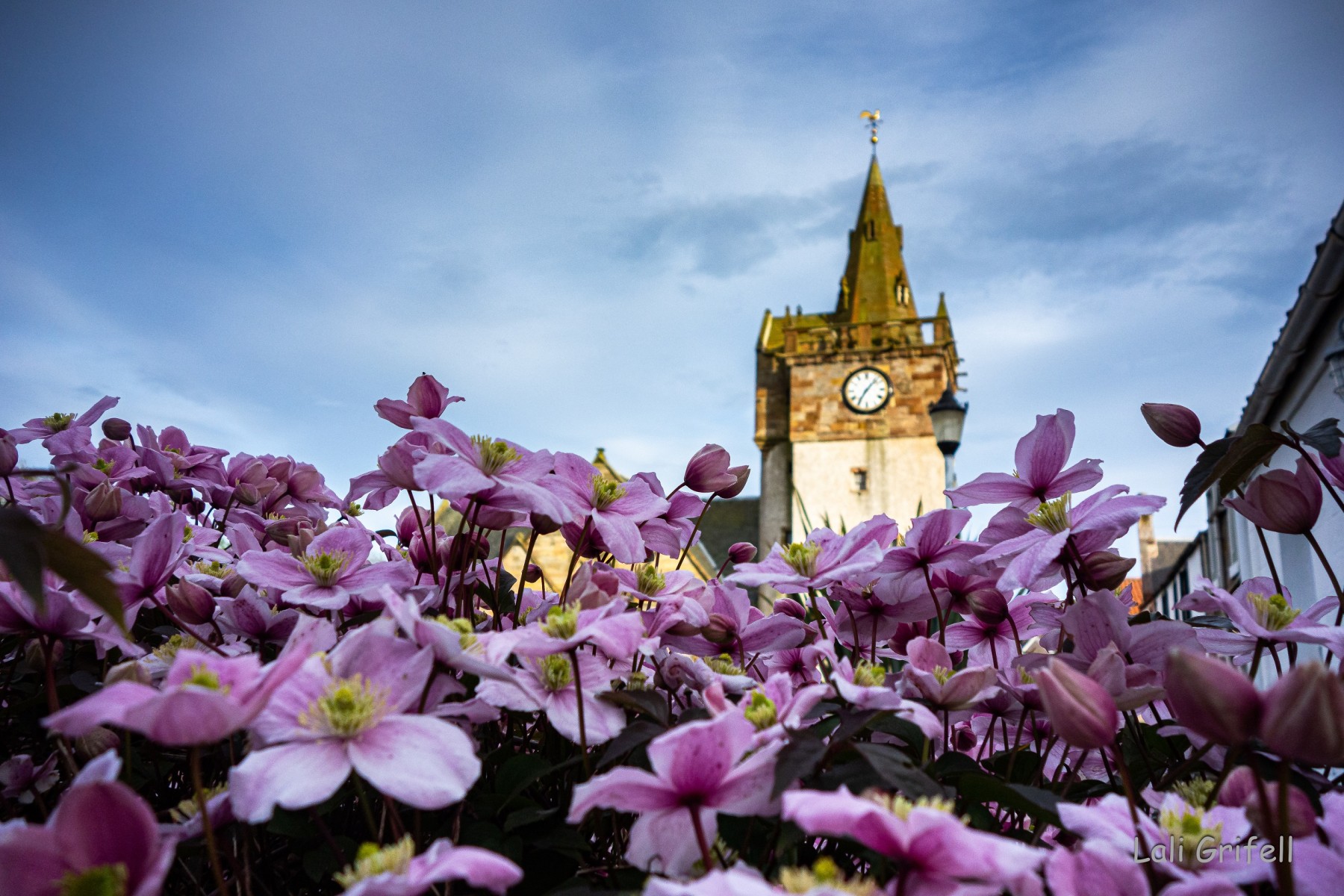 Lali, from team Merry Go Round the Globe at the University of St Andrews, sent in this atmospheric shot of spring flowers next to a clock tower.